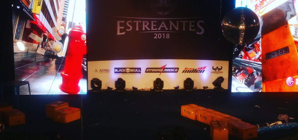 Utilizamos painéis de LED e lonas super bem esticada para dar tom de um cenário bem profissional para a competição, já que as imagens são exibidas pelo mundo todo.